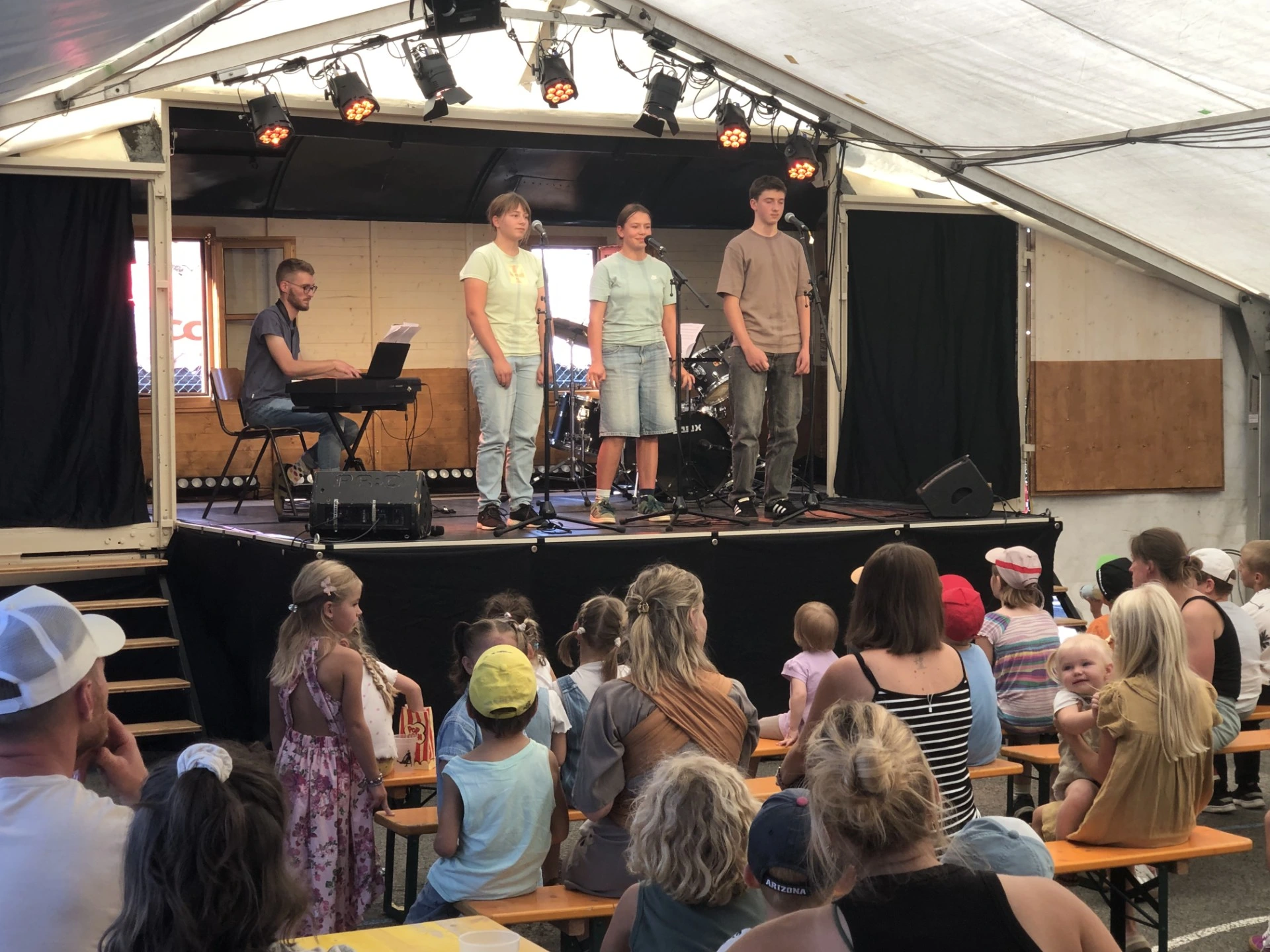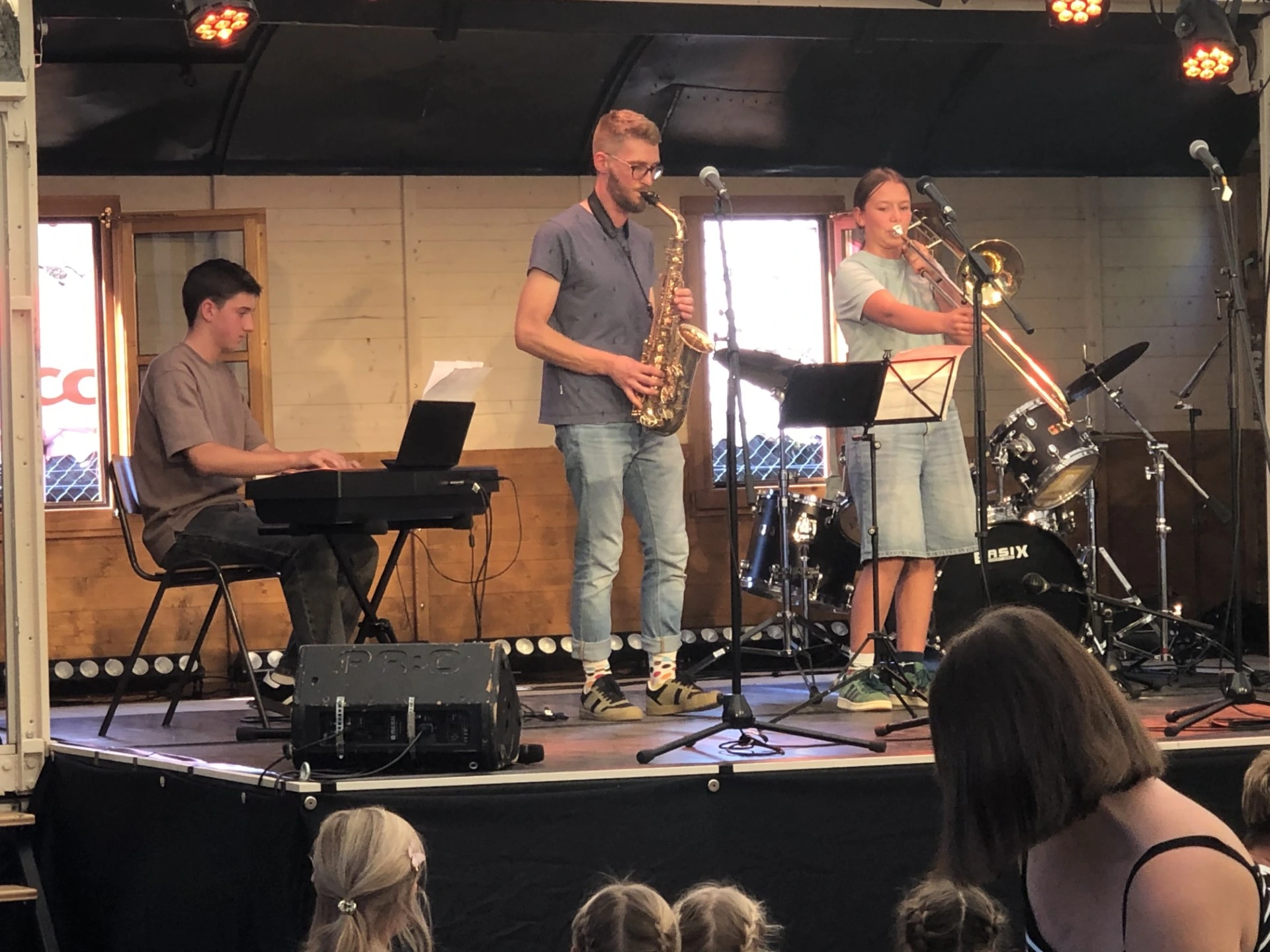 Une prestation de très bonne facture mélangeant prestations musicales et chantées, appréciée à sa juste valeur par le public présent. Le mérite des élèves est d’autant plus grand qu’ils n’ont eu que quelques semaines de répétition à leur disposition. Un grand bravo à Sina Loosli, Selina Gerber et Axel Brahier. Et un grand merci à Julian Eisinger, musicien du lieu et enseignant au gymnase de Bienne et du Jura bernois, qui a dirigé et accompagné ce trio depuis la rentrée d’août.